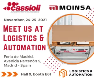 Cassioli, insieme a Moinsa, il nostro partner commerciale in Spagna, parteciperà al Logistics & Automation 2021, una delle più grandi fiere della penisola iberica dedicate alle nuove tecnologie per la logistica e l’automazione industriale.