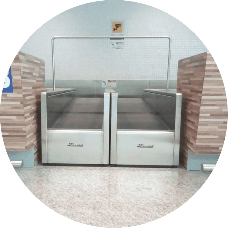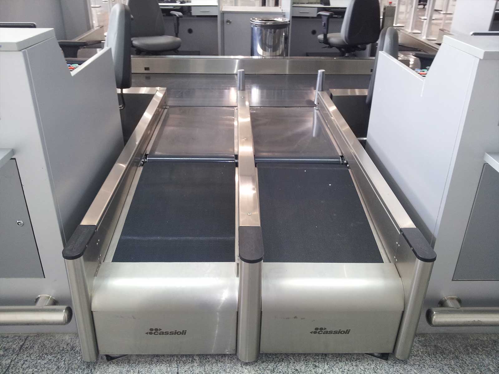 I sistemi check-in di Cassioli consentono di velocizzare le operazioni di consegna bagagli dei passeggeri in aeroporto e di trasportarli in maniera rapida e puntuale verso la stiva dell’aereo attraverso dei trasportatori automatici. La scelta scrupolosa dei materiali e la produzione accurata delle singole parti determinano un elevato livello qualitativo della stazione di pesatura e di trasporto. Il design moderno della struttura prevede un ampio utilizzo di acciaio inossidabile che, unitamente al funzionamento particolarmente silenzioso del dispositivo, rende il sistema adatto alle più moderne e tecnologiche hall degli aeroporti.