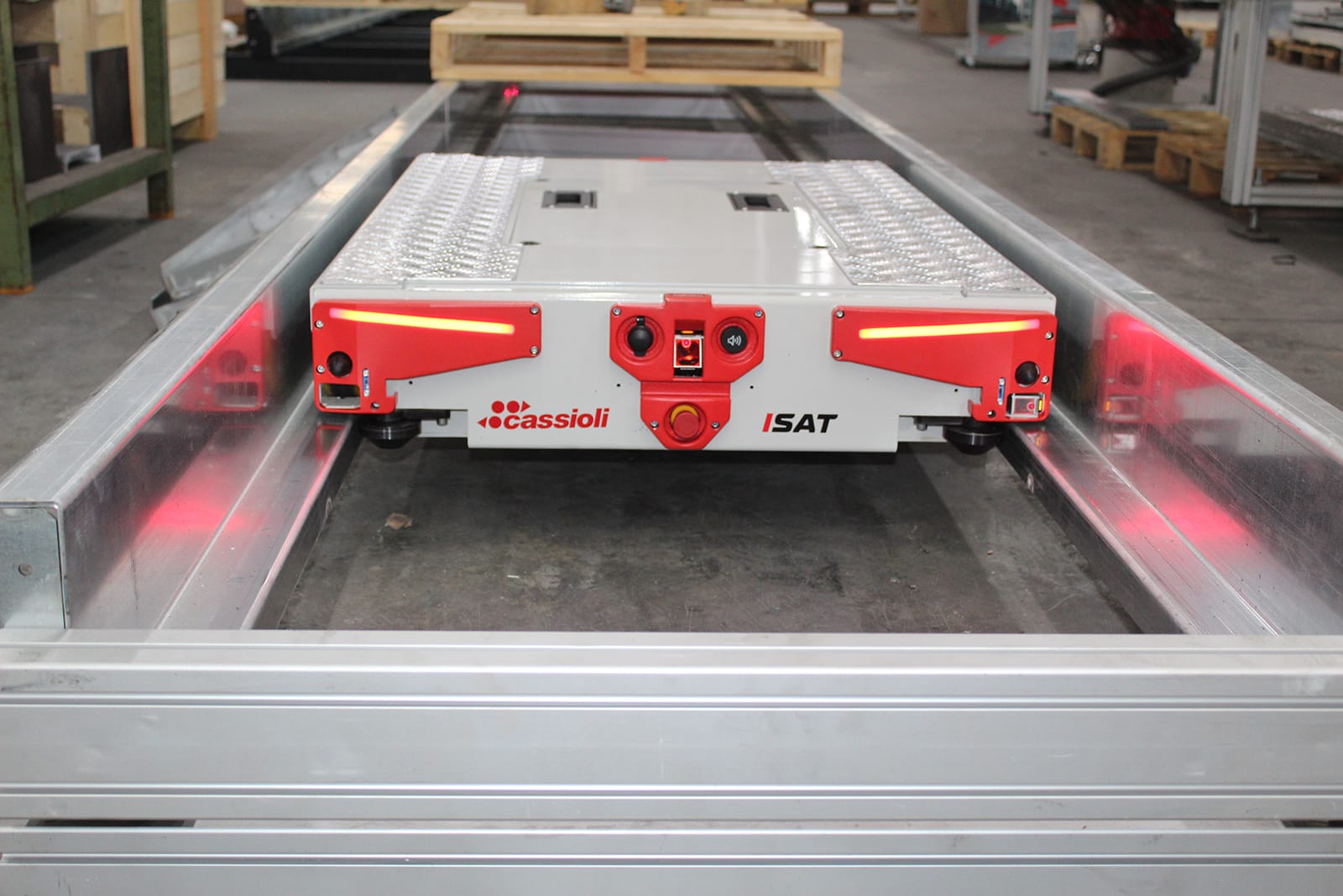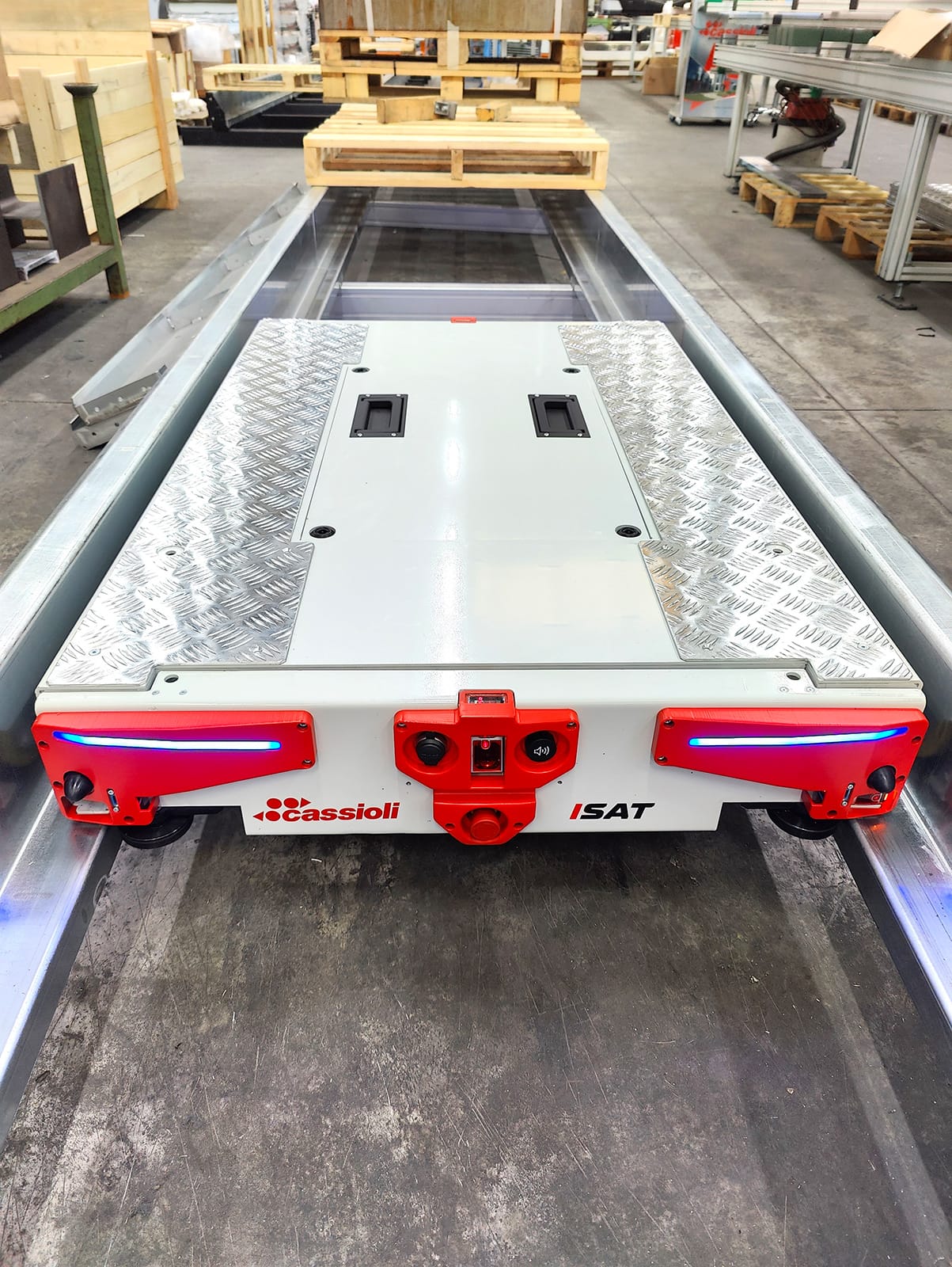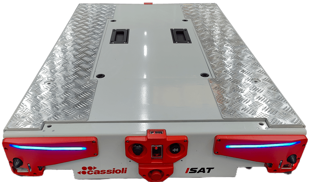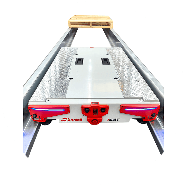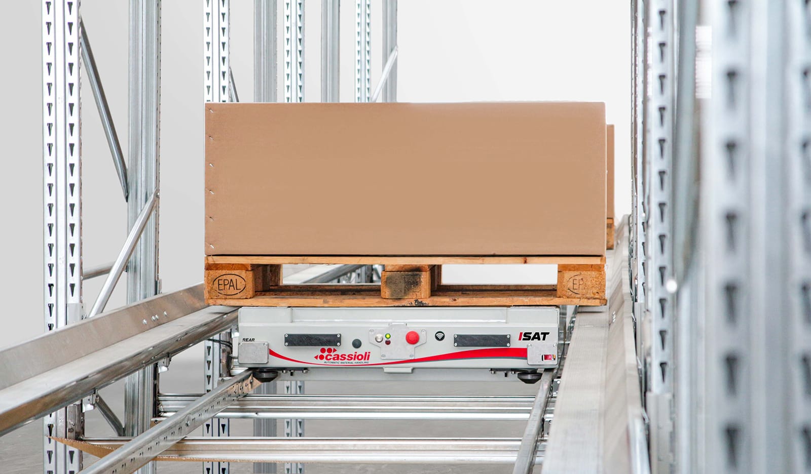 Il satellite (pallet shuttle) ISAT semi-automatico di Cassioli è stato progettato per lo stoccaggio di pallet ad elevata densità. ISAT semi-automatico permette lo stoccaggio di una grande quantità di pallet, con profondità di oltre 40 metri dal fronte di carico, consentendo l’ottimizzazione dello spazio dei magazzini e offrendo la possibilità di immagazzinare nello stesso canale di stoccaggio pallet di diverse profondità. ISAT, in modalità semi-automatica, viene comandato attraverso un telecomando gestito direttamente dall’operatore. Dal display del telecomando è possibile controllare in tempo reale le condizioni di esercizio. I segnalatori LED aiutano l’operatore a localizzare la posizione esatta del pallet shuttle nel magazzino. Il pallet shuttle ISAT è progettato anche per lavorare in ambienti con temperature inferiori allo zero: è quindi la soluzione ideale per operare in frigoriferi o congelatori industriali, senza influire minimamente sull’operatività e sulle performance degli stessi.