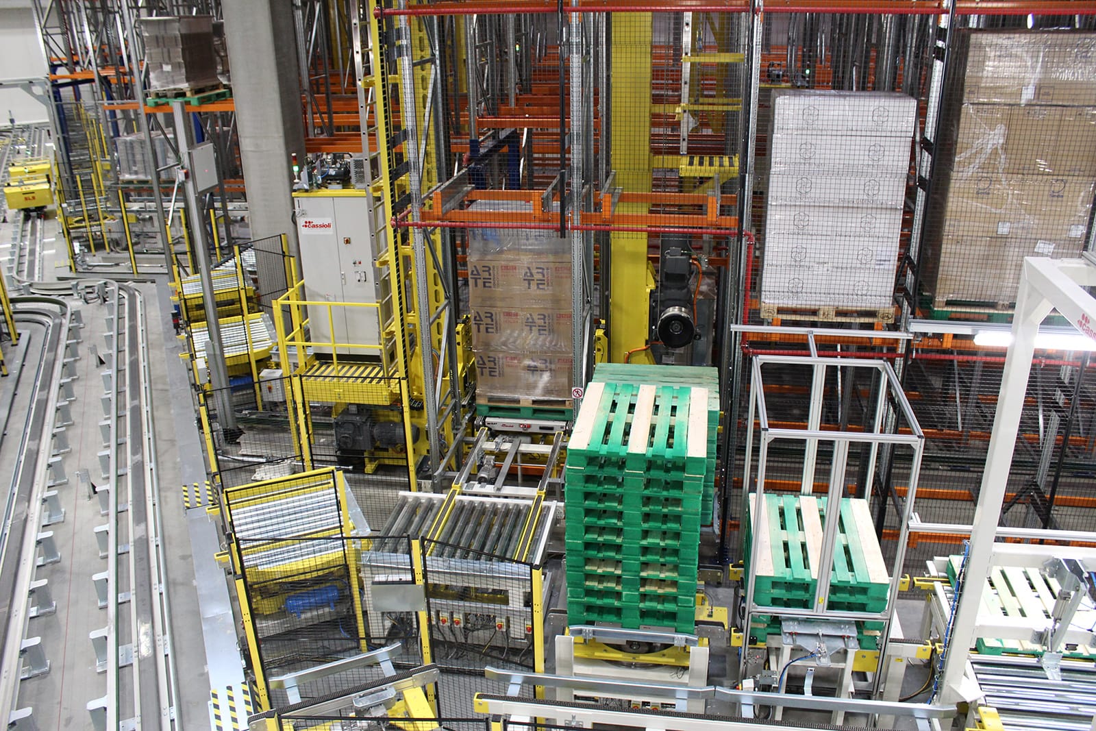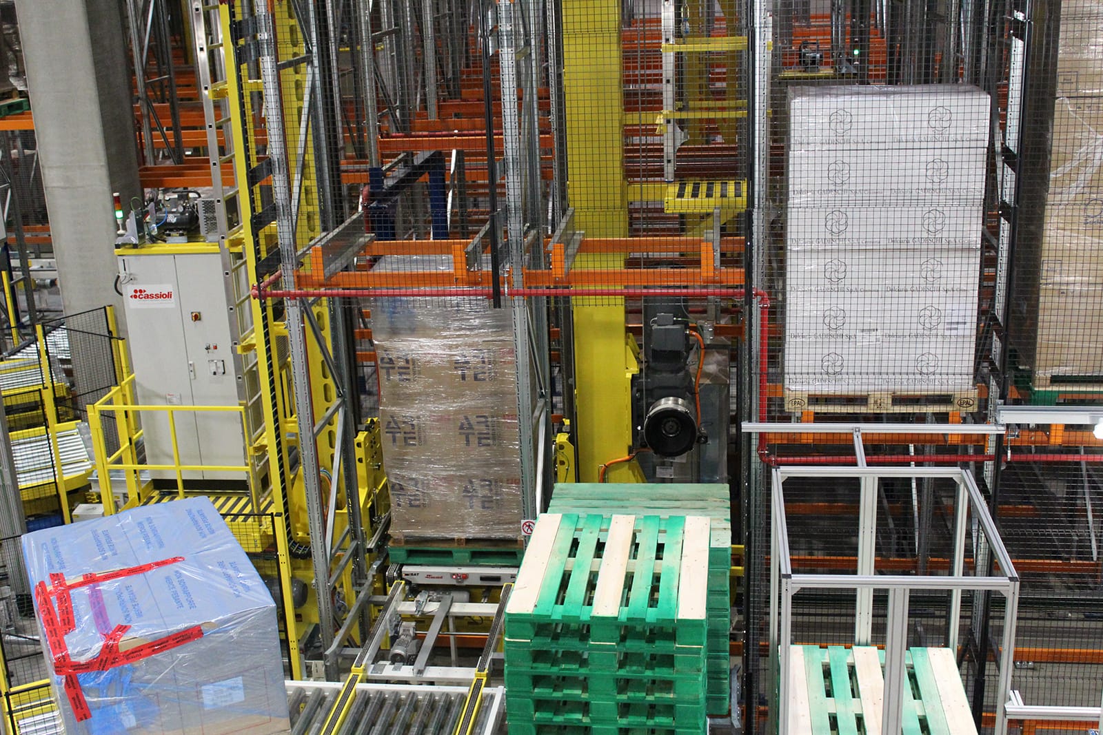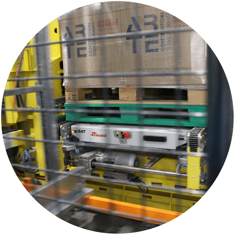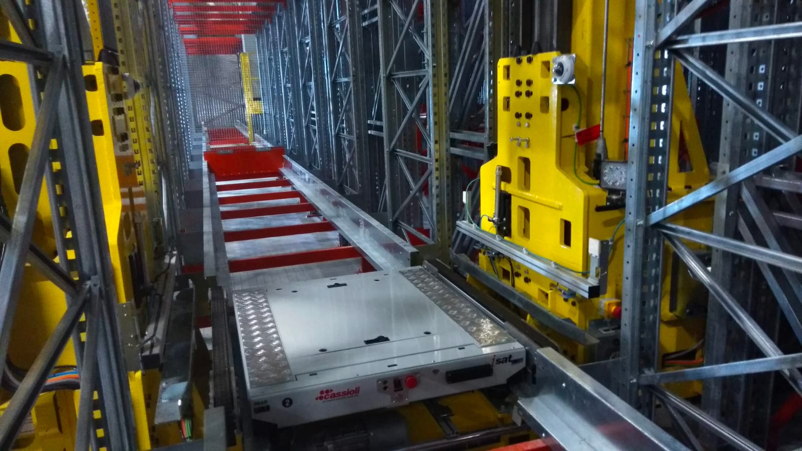 Magazzino automatico con trasloelevatore ICRANE dedicato allo stoccaggio di pallet in scaffalature multi-profondità. Il sistema ICRANE è il magazzino automatico di Cassioli appositamente progettato per lo stoccaggio di pallet in scaffalature a più profondità, grazie all’integrazione di satellite e trasloelevatore. Gli shuttle ISAT, dopo essere stati trasferiti a bordo di un trasloelevatore in un determinato canale di stoccaggio, recuperano o depositano il carico in base alle informazioni ricevute dal gestionale di magazzino.