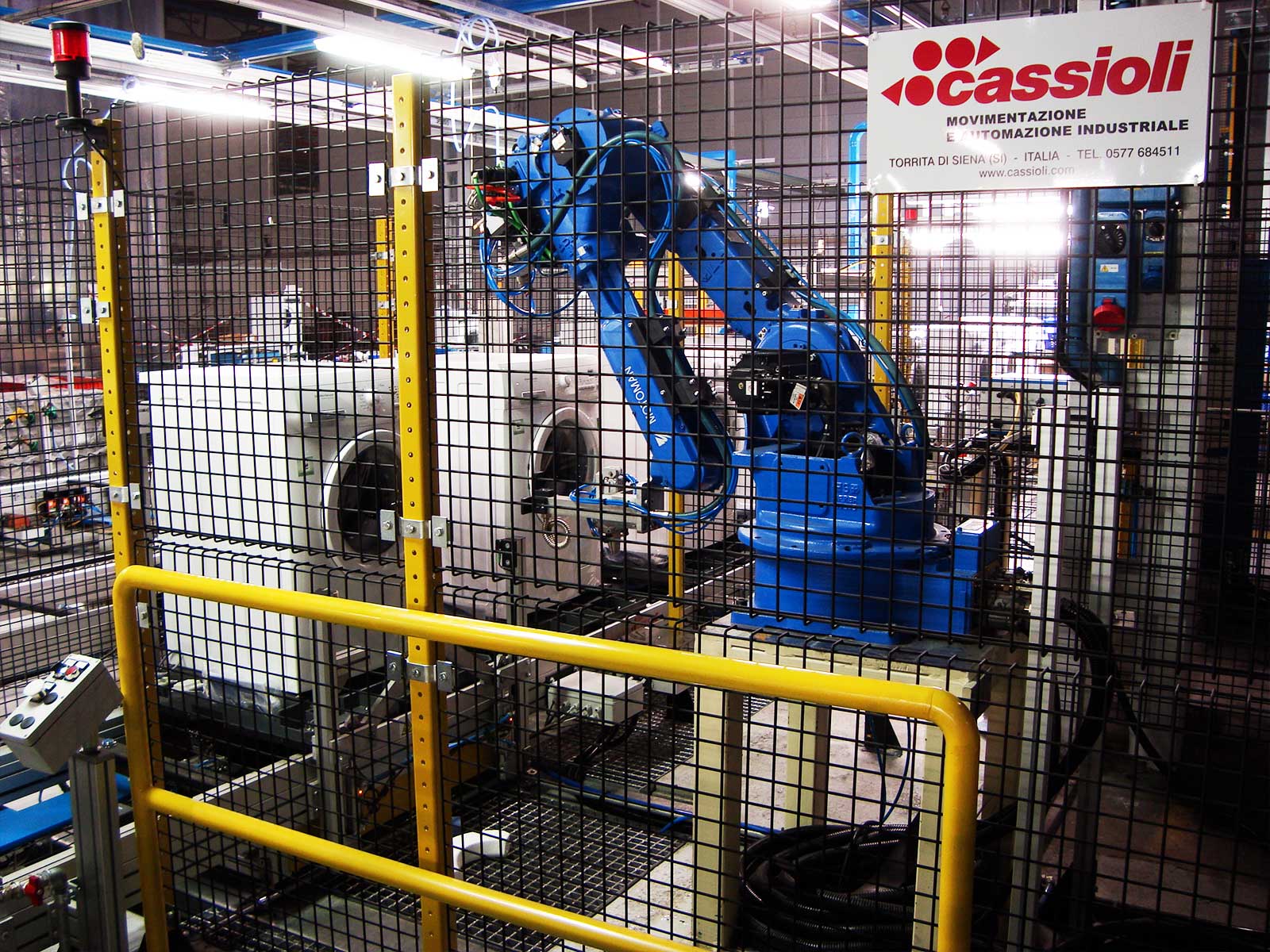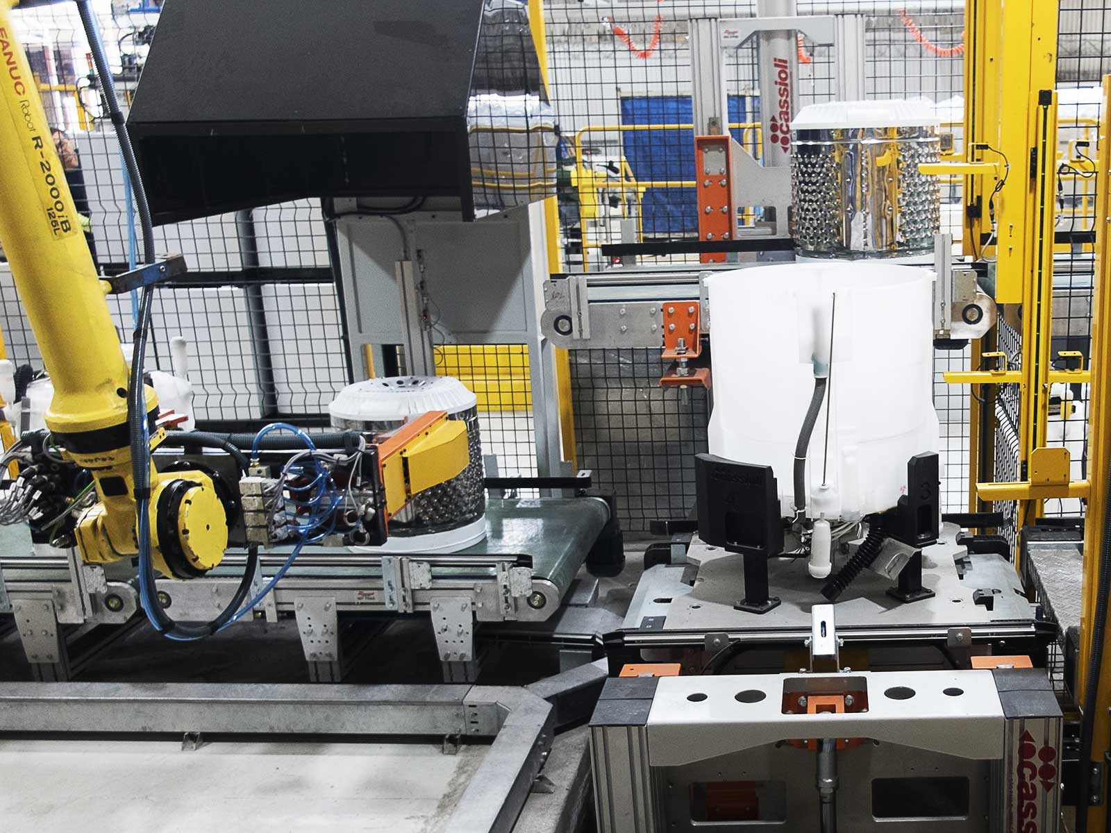 I robot ad assi cartesiani monolinea e multilinea e i robot antropomorfi garantiscono elevate prestazioni in termini di ciclica, capacità di carico e gestione di differenti codici. Nelle stazioni robotizzate Cassioli mette a disposizione della clientela qualsiasi dispositivo di presa, di aggancio e di lavorazione particolare in base alle specifiche esigenze richieste dal cliente. La progettazione di ogni postazione di lavoro è svolta con la massima cura: sia le stazioni automatiche che quelle robotizzate sono disegnate per garantire la massima funzionalità e potenzialità del sistema, oltre che le migliori condizioni di ergonomia e di sicurezza per gli operatori.