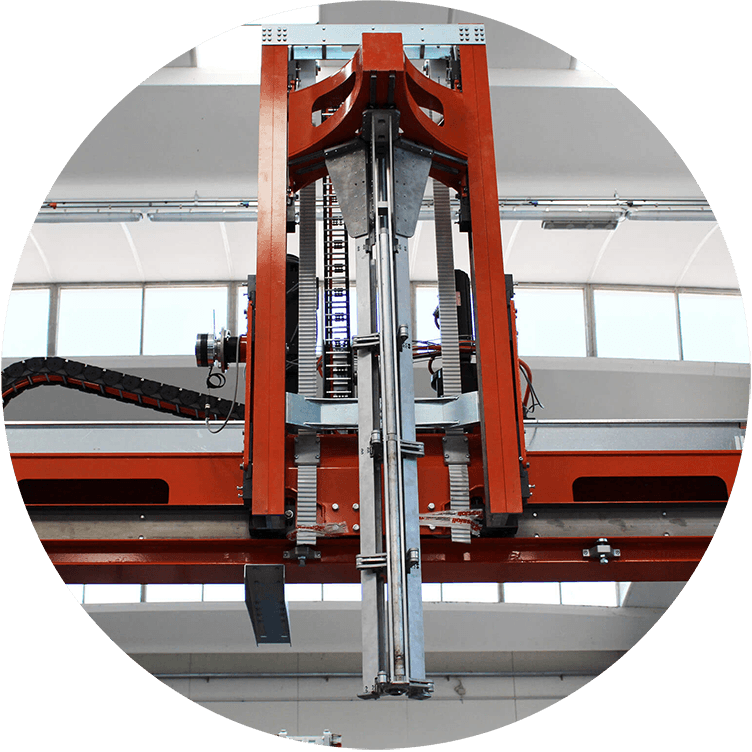 Il robot Gantry è il manipolatore cartesiano di Cassioli ad azionamento elettrico, progettato e costruito per lo stoccaggio intensivo degli pneumatici. All’interno della zona adibita alla palletizzazione, possono operare diversi Gantry, che prelevano gli pneumatici in arrivo in modo casuale sul trasportatore di ingresso e li impilano uno ad uno sul pavimento, ordinandoli per codice prodotto. Ciascun Gantry ha una propria area di lavoro all’interno dell’area di stoccaggio. La perfetta gestione e il controllo sicuro della macchina sono garantiti dalla piena integrazione dei tre aspetti fondamentali dell’automazione: meccanico, elettrico e software di gestione. Essendo sospeso da terra, il Gantry è la soluzione ideale per ottimizzare al meglio lo spazio: questa particolare macchina è realizzata per gestire contemporaneamente diverse misure di pneumatici.