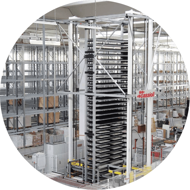 Cassioli ofrece una amplia gama de almacenes especiales que se diferencian por la metodología operativa, el tipo de material manipulado y la capacidad de manipulación. Basándose en la experiencia acumulada durante muchos años en el sector de los almacenes intensivos, CASSIOLI ofrece al cliente la solución de instalación más adecuada para sus exigencias, proporcionando una mejora efectiva y real en el sistema de producción-clasificación así como una optimización de los costes. La inversión inicial necesaria para comprar el sistema automatizado, de hecho, se puede amortizar en pocos años gracias a los considerables ahorros operativos en personal y a la óptima gestión del trabajo.