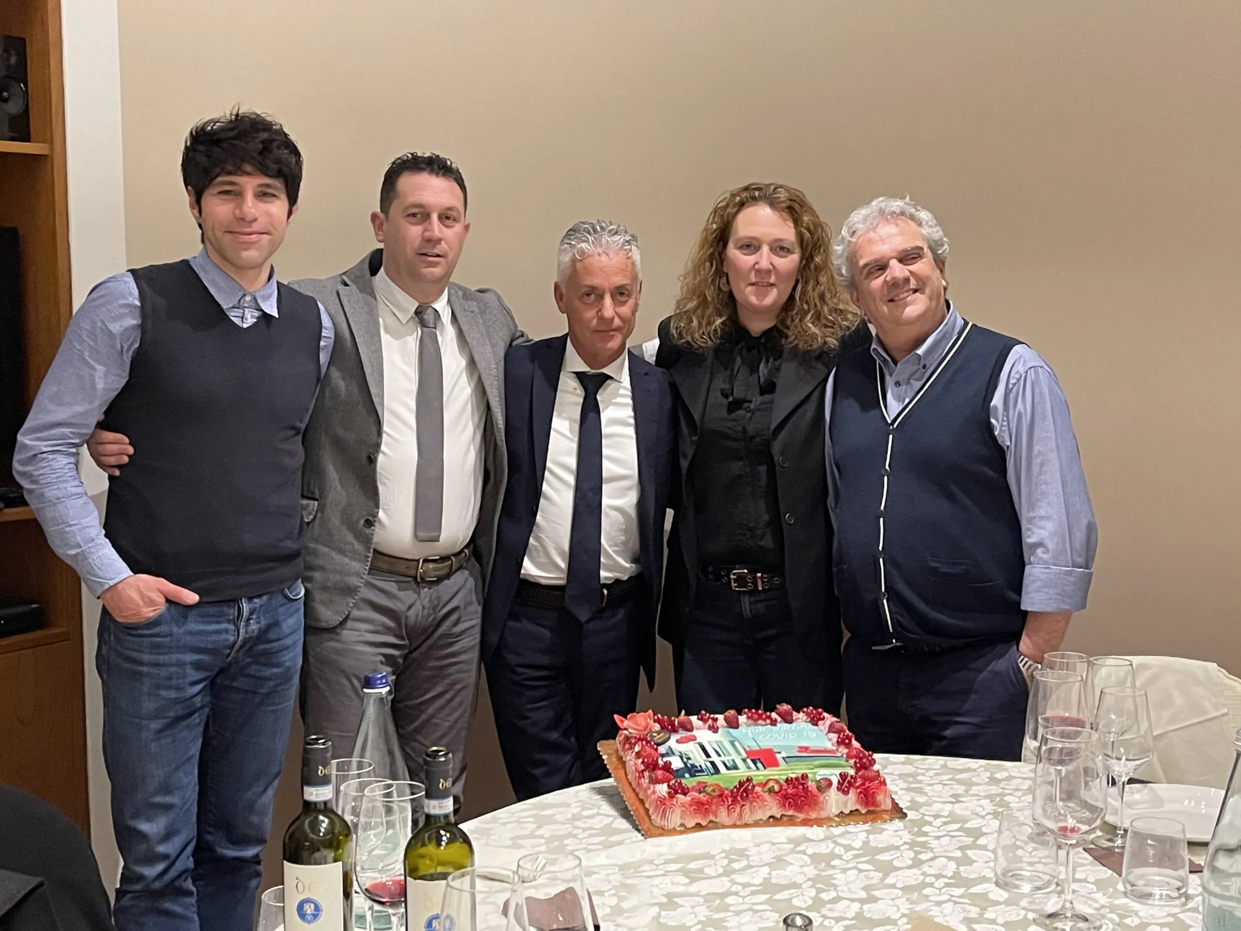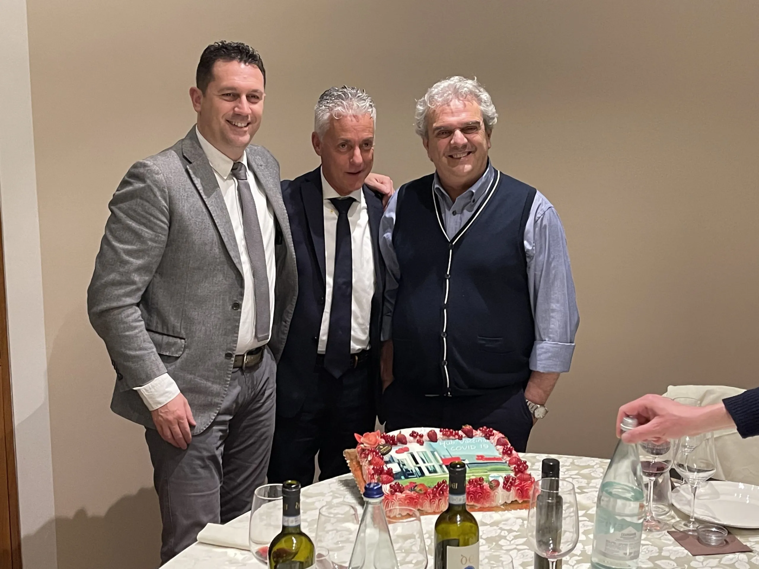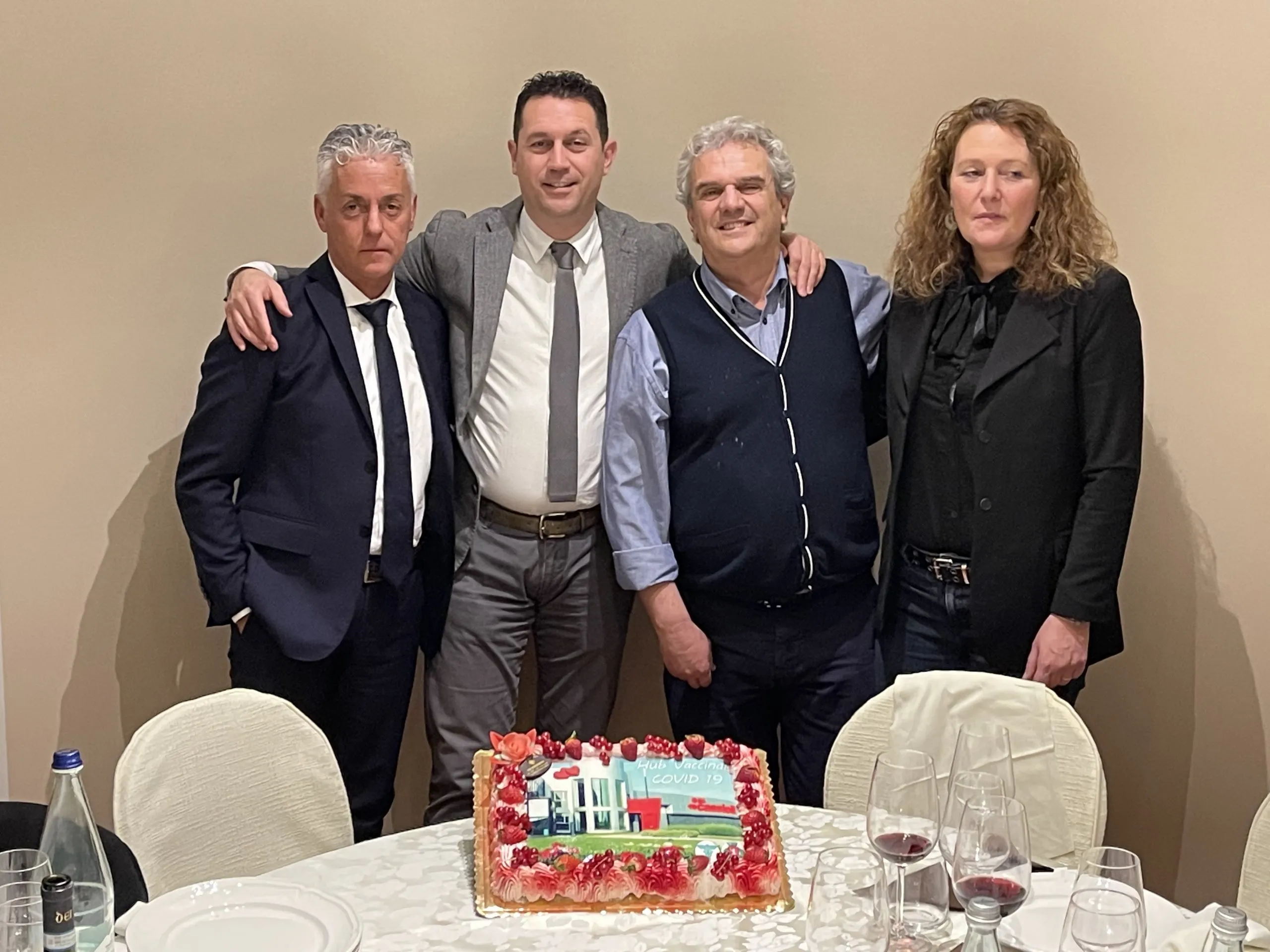 La fine del progetto è stata sancita da una cena che si è tenuta venerdì 25 febbraio (foto in calce) e che ha visto la partecipazione del CEO Carlo Cassioli, del responsabile della sicurezza Alessandro Bittoni, del sindaco di Torrita Giacomo Grazi, della Consigliera Regionale Rosignoli e di tutti i medici che hanno contribuito in primis alle vaccinazioni nell’Hub.