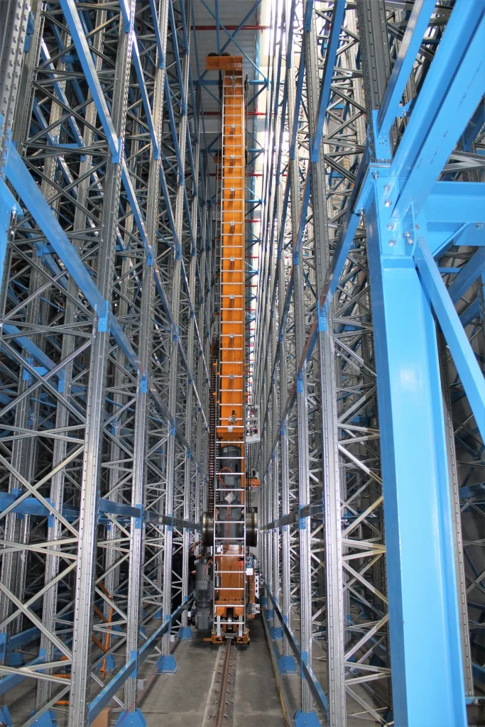 - instalacja nowego regału automatycznego z 2 układnicami o podwójnej głębokości i 4 nowymi stanowiskami kompletacyjnymi, zdolnymi do obsługiwania zarówno materiałów składowanych na paletach typu skid, jak i na europaletach;