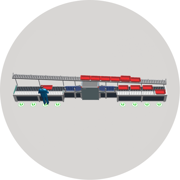 O FAST2CHECK EASY é o modelo mais compacto que a Cassioli criou para a inspeção das bagagens de mão dos passageiros no aeroporto. Graças à sua particular conformação reduzida, o modelo EASY é particularmente adequado para aeroportos que não disponibilizam de grandes áreas, mas que precisam utilizar um sistema de screening de última geração, rápido e seguro. O FAST2CHECK EASY foi criado com o objetivo de atender às necessidades de otimização dos fluxos. De fato, a maioria dos sistemas aeroportuários de recirculação de bandejas presentes no mercado precisam de superfícies entre 16 e 20 metros para garantir aumentos significativos no tráfego e no desempenho.