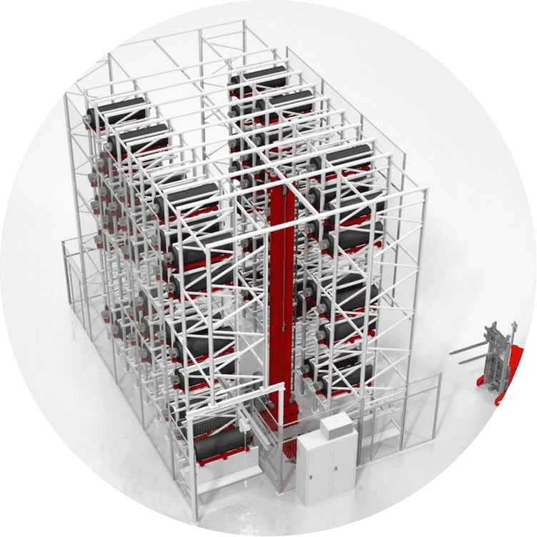 Armazém automático e sistema de recuperação para barris presentes em paletes. O armazém de barris da Cassioli permite armazenar de forma rápida, segura e eficiente os barris que serão utilizados pela Tire Building Machine para a produção de pneus de alta qualidade. O armazém de barris dispõe de uma ou mais empilhadeiras que permitem manipular facilmente os moldes, armazená-los e prepará-los para retirada para as fases seguintes do processo. O sistema de gestão da Cassioli para o controle do armazém controla o fluxo dos materiais e garante a gestão completa dos dados.