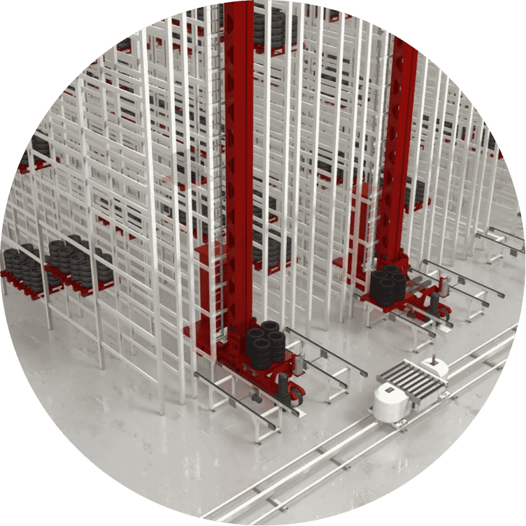 Os armazéns automáticos da Cassioli para a indústria pneumática permitem alcançar desempenhos elevados em termos de utilização dos espaços nos estabelecimentos de produção. O armazenamento intensivo de pneus, obtido graças aos armazéns automáticos da Cassioli, não inclui apenas os armazéns para pneus acabados, mas também armazéns para matérias-primas, caixas, barris, bobinas PCT, moldes e green tire.