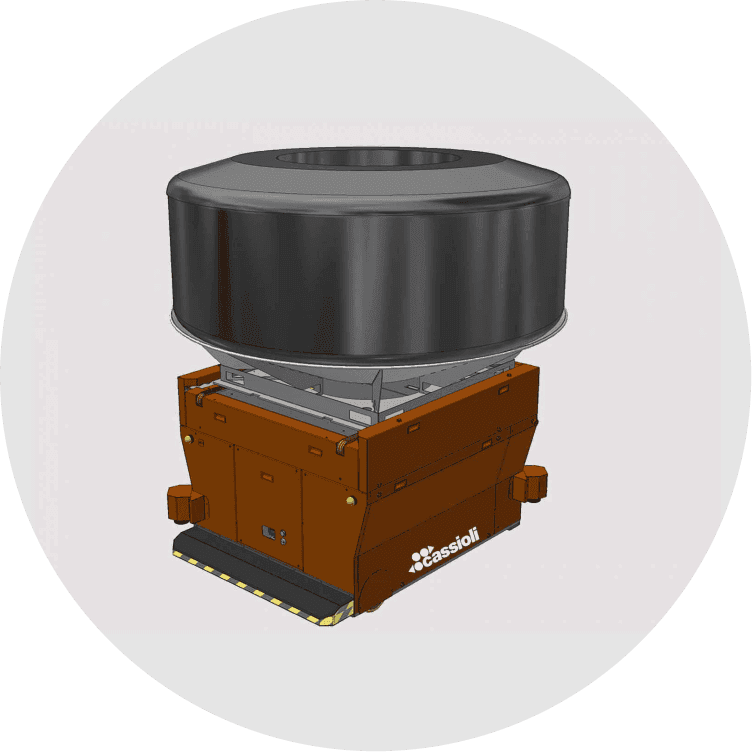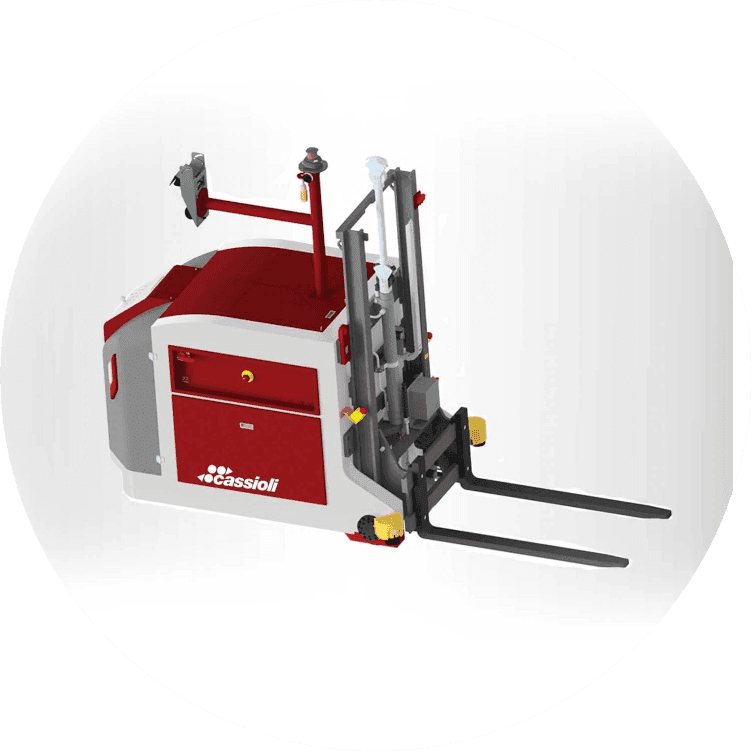 O sistema AGV (Automatic Guided Vehicle) da Cassioli é uma forma flexível de lidar com unidades de carga com um alto nível de automação. O sistema AGV da Cassioli garante a total integração com o sistema de informação de alto nível utilizado pelo cliente (host do cliente, sistema departamental, SAP, etc.) e com outros sistemas ou dispositivos de manipulação. Os AGVs podem ser realizados com navegação natural ou com navegação a laser (LGV).