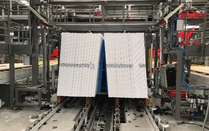 Заказчик запросил, чтобы автоматизированный склад для хранения готовой продукции был разделен на 6 независимых частей, каждая из которых оборудована краном-штабелером, чтобы гарантировать большую гибкость в случае повреждения или частичной блокировки системы. Погрузочно-разгрузочная площадка также должна была состоять из 4 независимых площадок с станинами для плит.
